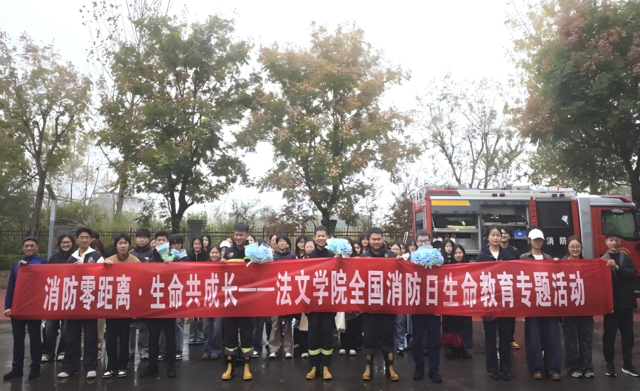 11月9日是第34个全国消防安全日,为进一步提高学生消防安全意识与自防自救能力,深化生命教育内涵,11月8日法律与人文艺术学院联合城南消防救援站,与消防救援队共同开展“消防零距离・生命共成长”专题活动。