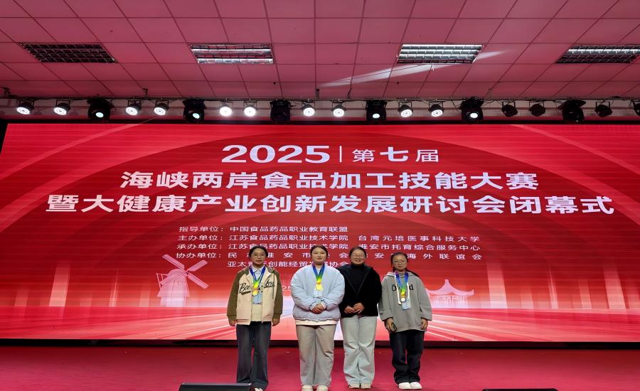2025年11月26日,第七届海峡两岸食品加工技能大赛在江苏食品药品职业技术学院圆满落幕。大赛汇聚了来自大陆和台湾地区13所院校的120多名优秀选手。比赛围绕“糕点制作”“中式烹饪”“营销创意”“健康照护”四个赛项,我院婴幼儿托育服务与管理专业三位同学代表受邀参加以“幼有所育、幼有善育”为主题的婴幼儿照护组赛项。本赛项为个人赛,最终有24名选手进入决赛环节,由刘皓月老师带队指导的苏琦同学获得特等奖,蔡羽惠同学获得一等奖,潘海丽同学获得二等奖的好成绩。