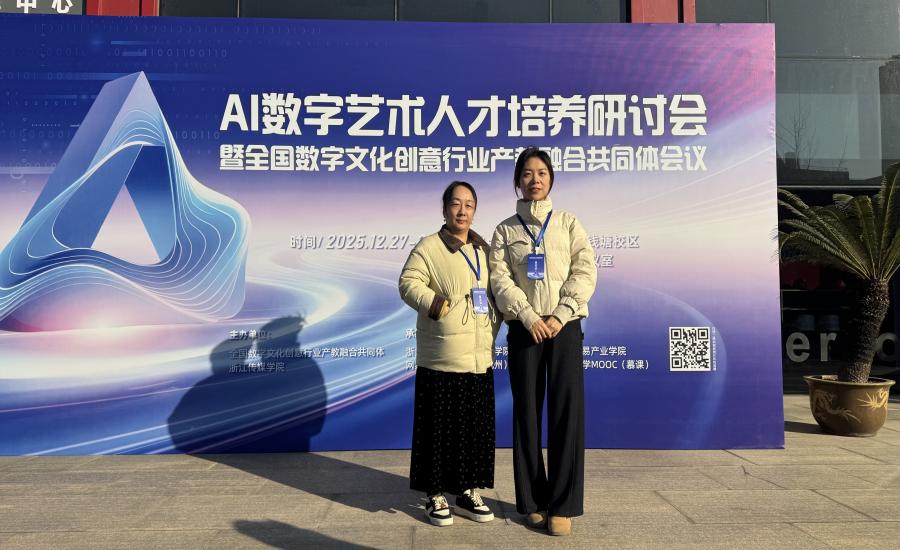 为深化数字文创领域产教融合,探索AI时代艺术人才培养新路径,2025年12月26日至28日,由全国数字文化创意行业产教融合共同体与浙江传媒学院联合主办的“AI数字艺术人才培养研讨会暨全国数字文化创意行业产教融合共同体2026年度工作交流活动”在杭州顺利举行。法文学院数媒教研室主任何梦雪、视传教研室主任张岩代表应邀出席会议。与来自全国的行业企业、兄弟院校代表齐聚一堂,共商数字文创人才培养大计,为我院数字产业学院建设和国际化数字艺术人才培养带回重要机遇与发展思路。