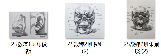 课程中,我们从素描基础概念、经典作品赏析起步,通过线条训练、几何体透视与光影练习,扎实掌握了黑白灰归纳的核心技巧;随后逐步深入静物结构分析、质感表现,再到人像五官与头骨的系统训练,大家的造型能力、审美素养与观察敏锐度均得到了显著提升。