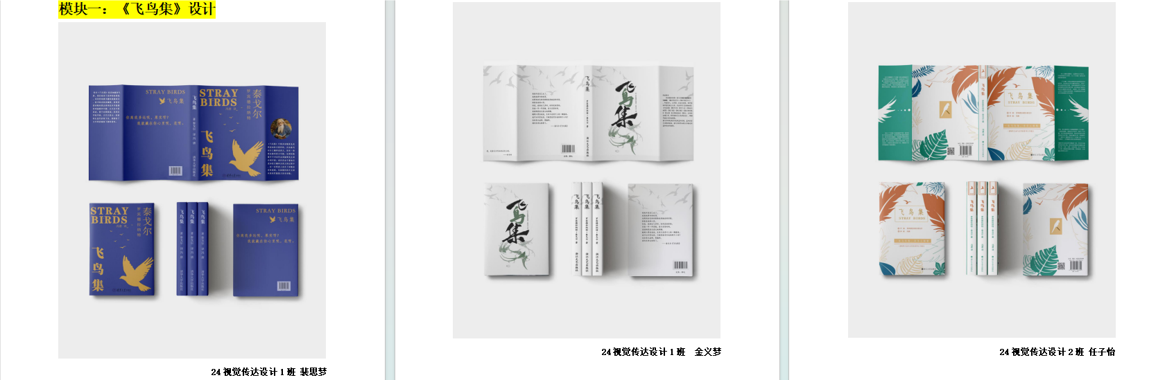 本课程以审美能力与设计美感的提升为核心,通过分模块的教学安排,将书籍装帧设计的基本原理、形式语言、视觉心理与实际设计任务有机融合。在持续的设计实践中,逐步加深对书籍构成要素、版式秩序、材料语言及装订方式的理解,促使同学们在实践中体会书籍装帧设计所蕴含的文化内涵与设计思想。