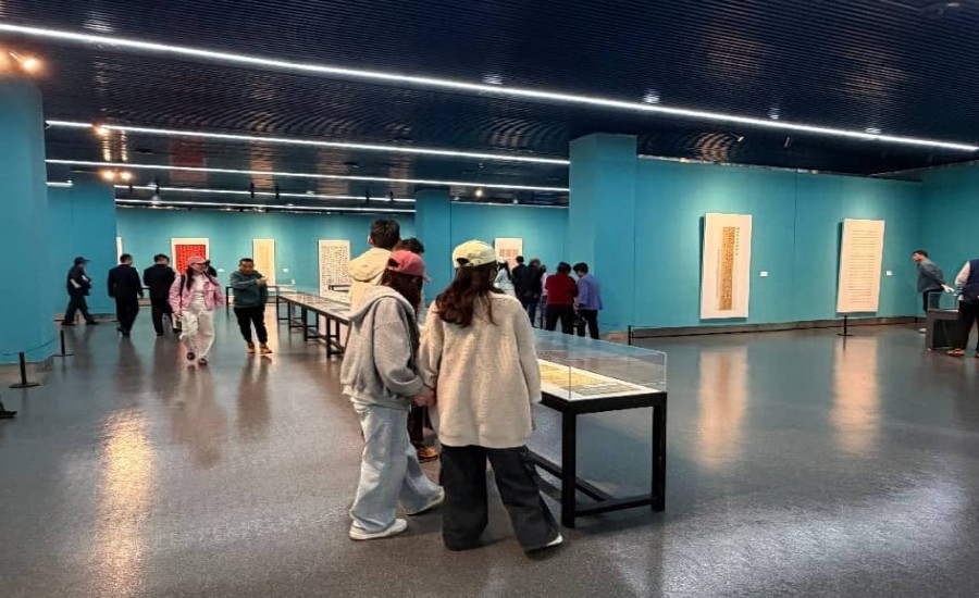 开幕式结束后,随行教师结合作品特点现场开展专业解说与针对性引导,带领学生从笔墨章法、运笔技巧、艺术风格到文化内涵等维度,细细品读每幅作品的艺术精髓。法文学院数字媒体技术专业学生表示,传统书法的线条韵律与意境营造为数字艺术创作提供了丰富灵感,未来将尝试运用数字技术对书法艺术进行创新呈现,让经典文化在数字时代焕发新活力。