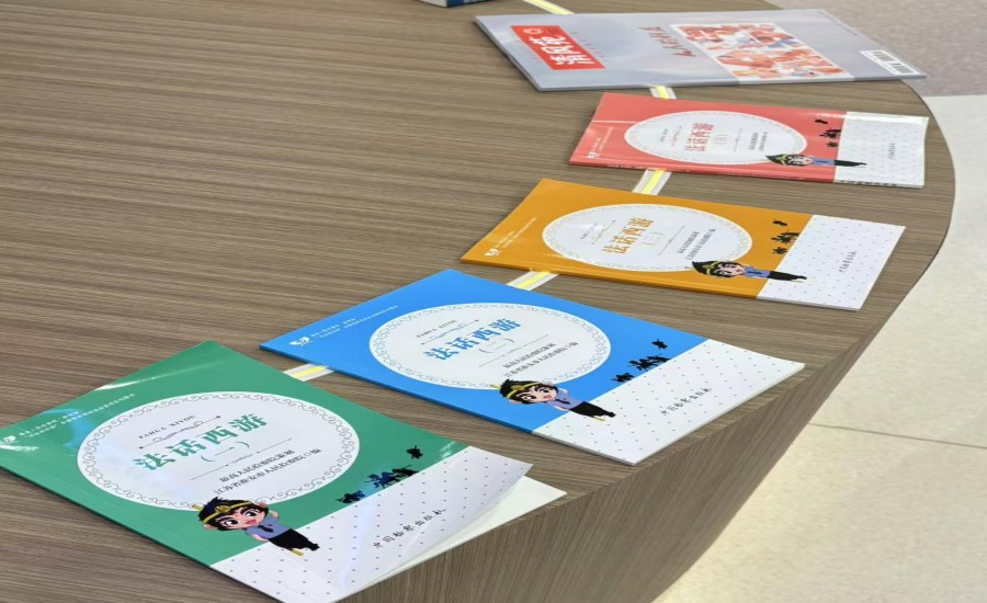 在未成年人检察室,检察官介绍了具有淮安本地特色的文创产品“法话西游”,巧妙将法律与西游记元素相结合,既弘扬了传统文化,也提高了普法趣味,吸引同学们纷纷驻足浏览。同学们通过生动有趣的案例,了解未成年检察官的职责以及对未成年人的保护的实例。
