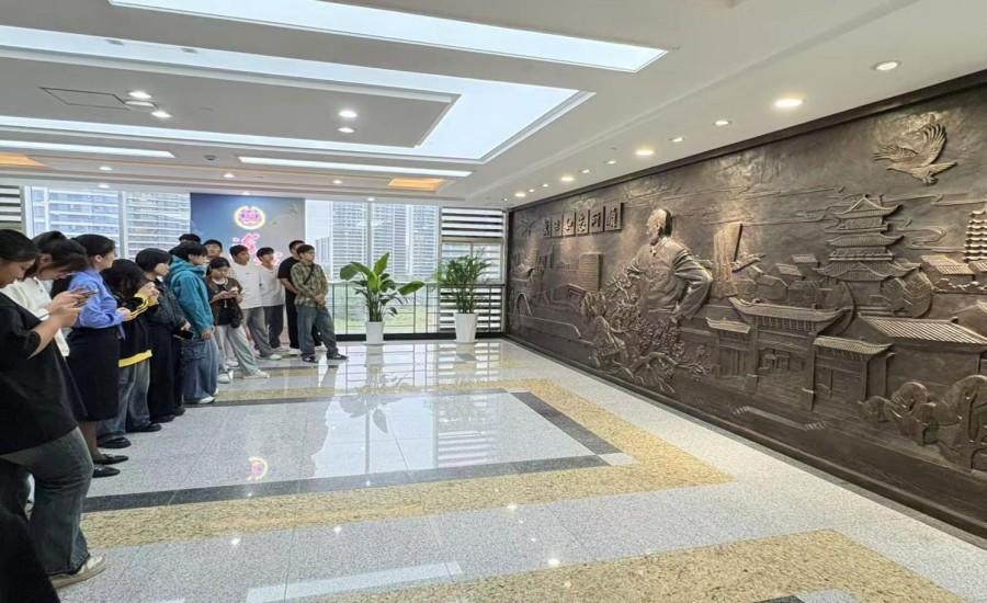 在淮安市人民检察院院史馆,同学们参观了具有历史意义的刑事卷宗、先进人物事迹、干警工作照等。淮安检察历史以来使用过的印章被排列成“人民”字样,体现着检察人的历史使命和维护公平正义的初心。