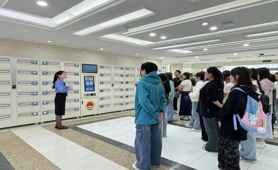 在案件管理中心,同学们实地体验检察办公办案场景,讲解员介绍了信息化建设赋能检察官日常工作,根据实践需求改进办公方式,推动检察工作提质增效。看着大屏幕数据,有同学发出疑问“什么样的案子会出现在这数据中”,讲解员耐心地讲解了检察院受理案件范围,让新生对刑事诉讼法有了初步了解。