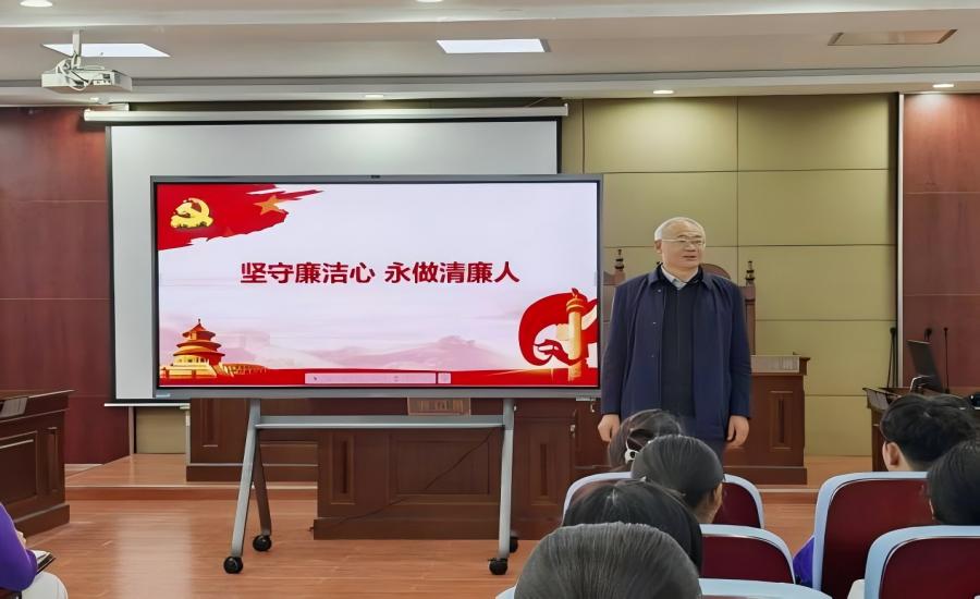 学校关工委副秘书长蔡振华以“坚守廉洁心,永做清廉人”为主题,结合党的纪律要求与青年成长实际,从廉洁自律的时代意义、入党积极分子如何践行清廉准则两个维度展开讲解,强调青年学子作为党的后备力量,需从思想上树立“知敬畏、存戒惧、守底线”的意识,在学习、生活和工作中坚守原则,以清廉品格锤炼党性修养。