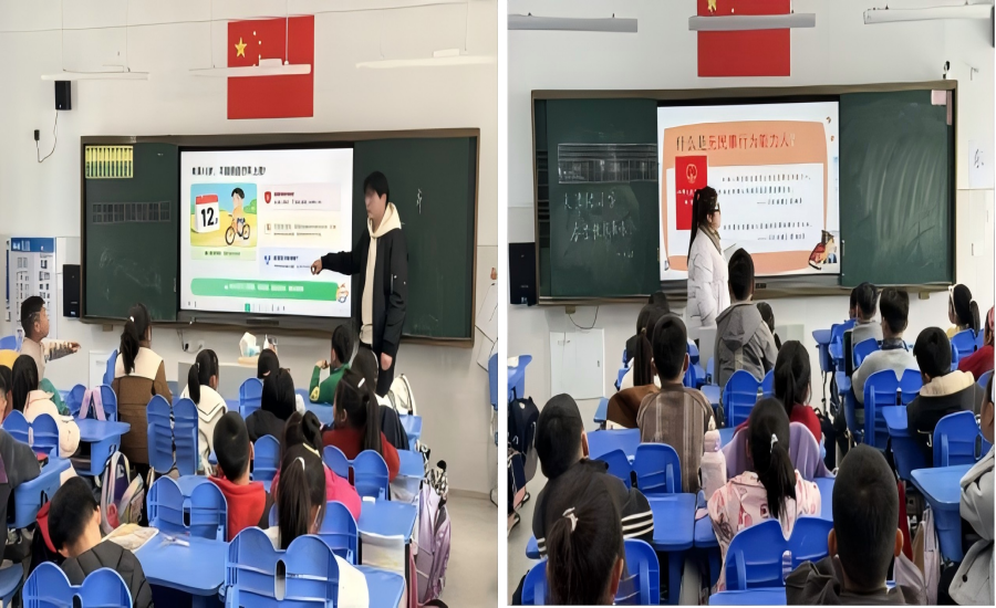本次活动围绕“课间安全、身体保护、网络安全、交通法规”四大核心板块,通过生动的案例讲解与互动问答,为两校师生送上了一份“量身定制”的法治教育大餐。