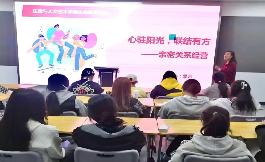 为落实学校生命教育工作,引导大学生树立健康的情感价值观,提升亲密关系经营能力,4月9日晚,法文学院于智慧商科教室成功举办"心驻阳光,联结有方"亲密关系经营主题生命教育讲座。本次讲座特邀国家二级心理咨询师、一级婚姻家庭咨询师、《淮海晚报》专栏情感咨询师、基础教学部吴芳副教授担任主讲人,学院心理健康部成员、各班心理委员、学生代表参加了讲座。